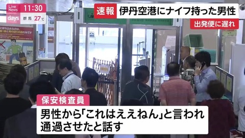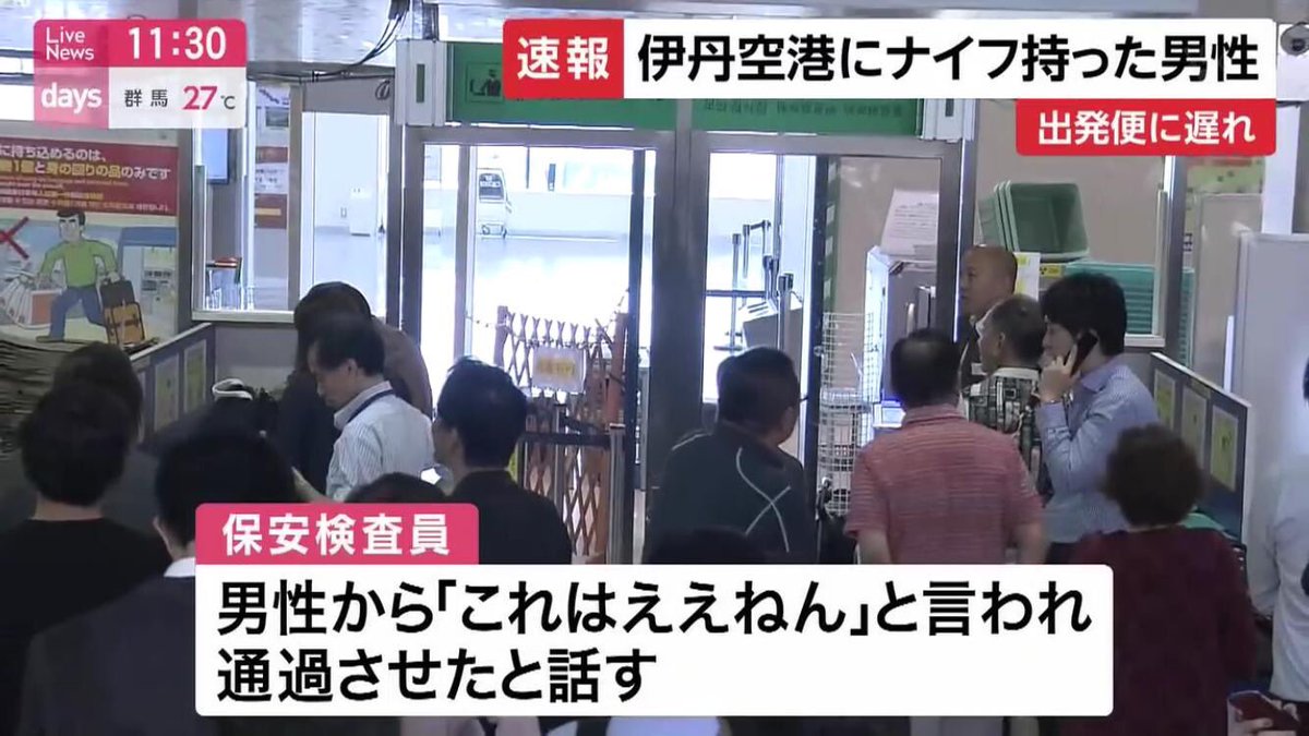 26日午前7時頃、伊丹空港の全日空の保安検査場で小型ナイフらしきものを持った乗客を誤って通してしまったということです。