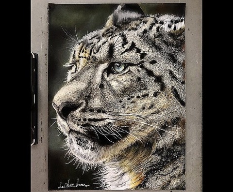 ネコを題材に描かれたこちら。2枚を並べると、そもそも右側は写真ではないかと疑ってしまいたくなるが、れっきとした絵だ。どちらも味わい深い作品ではあるが、右の作品の仕上がりに思わず見とれてしまう。