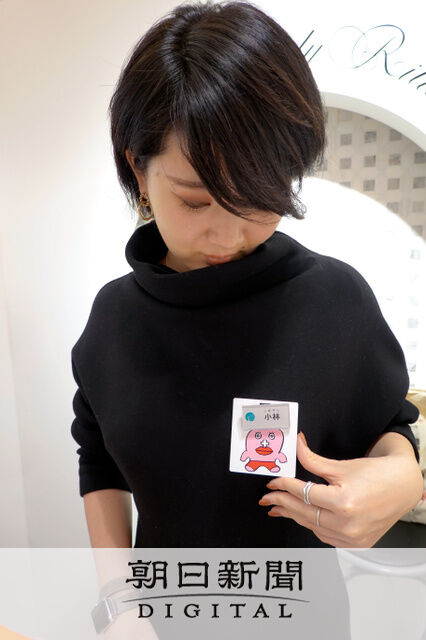 生理バッジは縦8センチ、横7センチの紙製で、名札の下に着用する。小山健さんの漫画「生理ちゃん」に登場するキャラクターが描かれた面を示すと、「私は生理中です」との意思表示になる。周囲に知られたくない人や生理でない場合は、裏面の売り場のロゴを表示する仕組みだ。身につけないという選択肢もある。