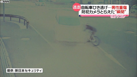 大阪府門真市で3日、自転車に乗っていた男性が車にひき逃げされ大けがをした。現場付近の防犯カメラがその瞬間を捉えており、警察が行方を追っている。